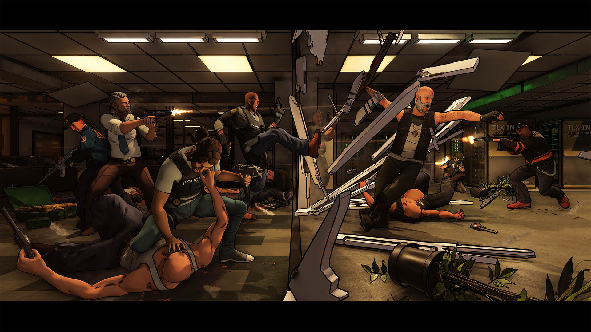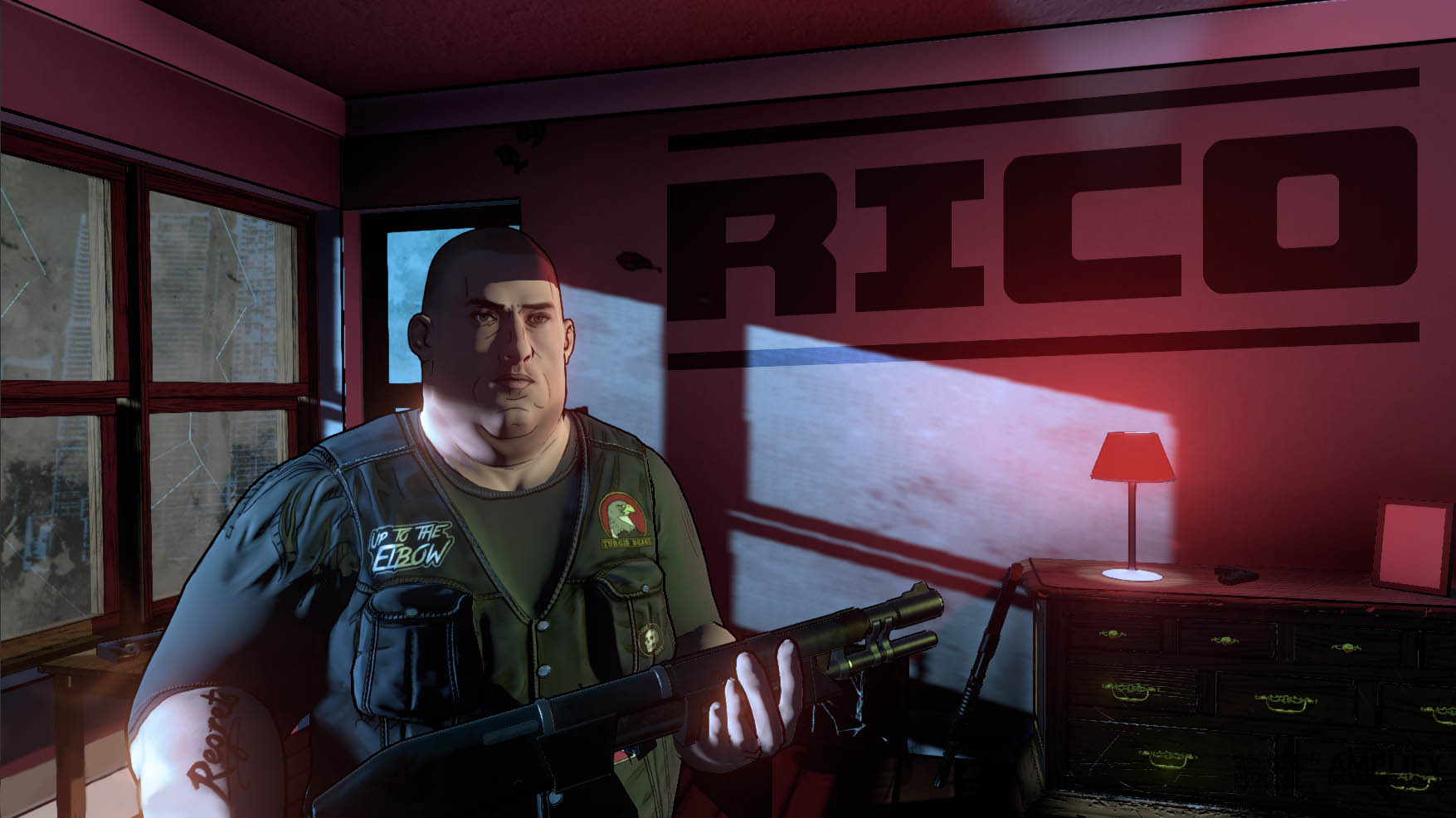 RICO is an arcade-style, first-person shooter inspired by modern action cinema. In the game you and a friend play as a pair of loose-cannon police partners, given twenty-four hours to crack a case as part of an elite organised crime taskforce.